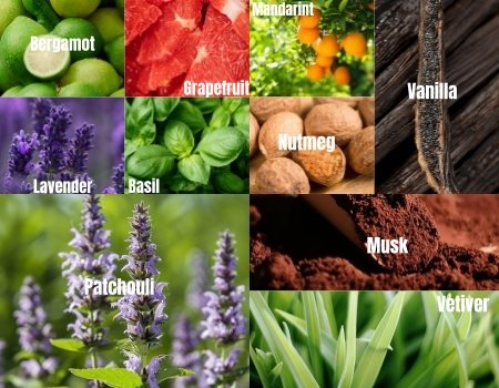 ![]() | Top note: lemon, grapefruit, mandarin orange Middle note: lavender, basil, nutmeg Base note: patchouli, vetiver, musk, vanilla |