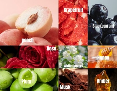 ![]() | Top note: white peach, grapefruit, blackcurrant Middle note: rose, honey, white floral accord Base note: musk, plum, amber |